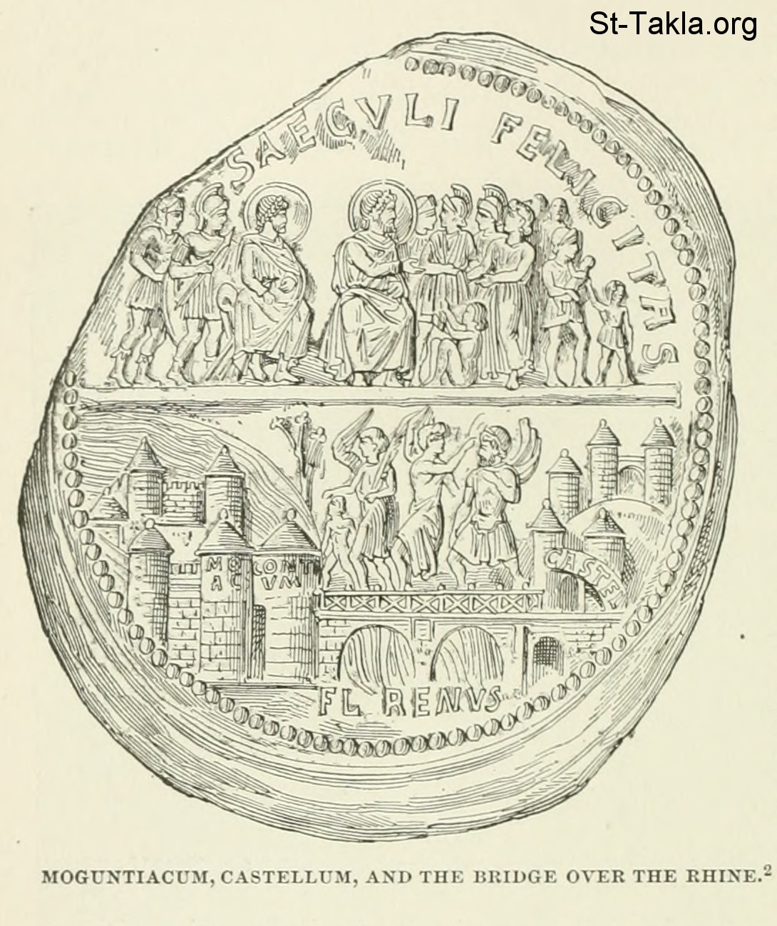 Moguntiacum, castellum, and the bridge over the Thine - History of Rome, and of the Roman people, from its origin to the invasion of the barbarians (Volume 8), book by Jean Victor Duruy, 1884.