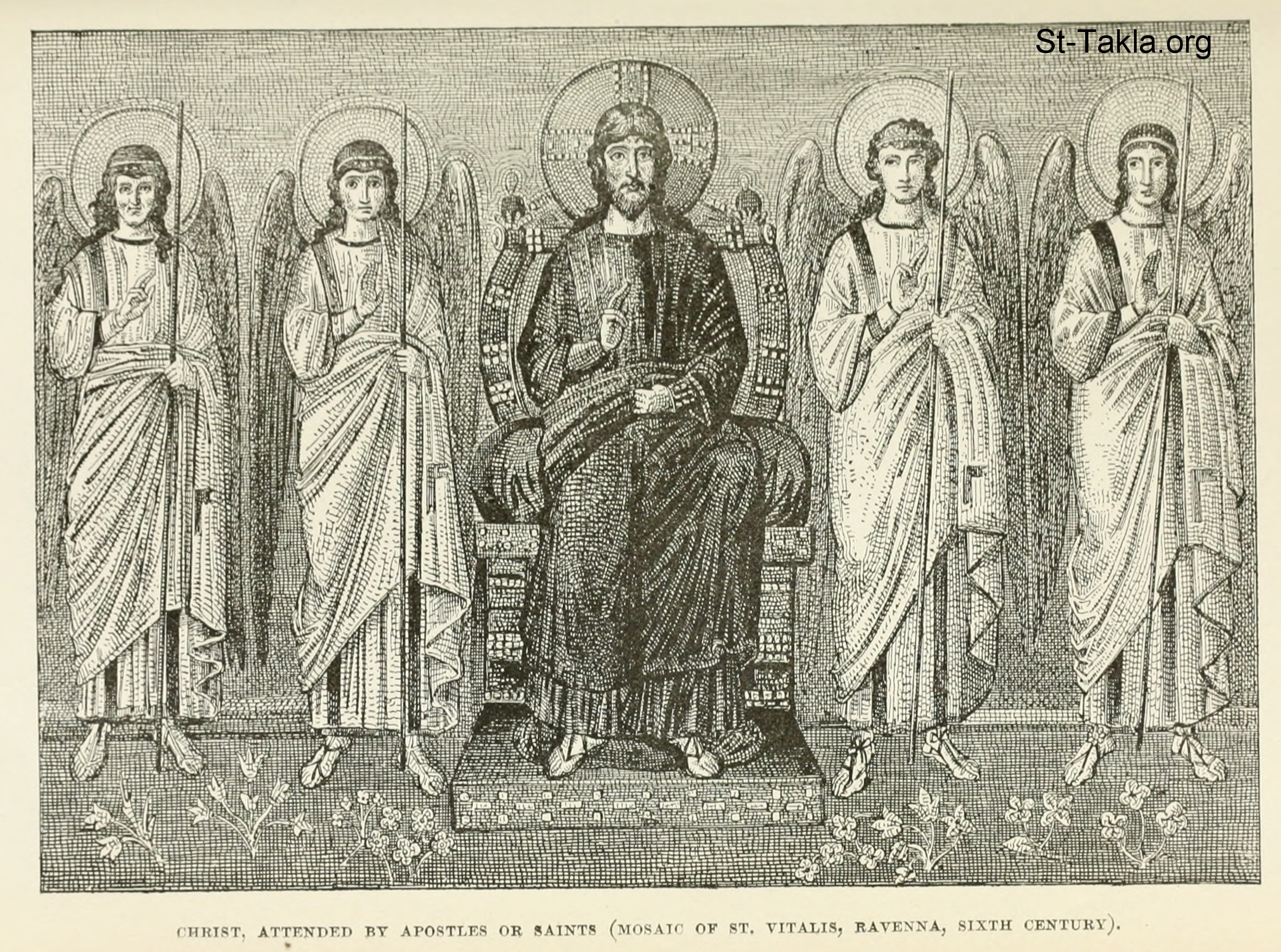 Christ, at attended by angels (mosaic of sand Vitalis, Ravenna, 6th century) - History of Rome, and of the Roman people, from its origin to the invasion of the barbarians (Volume 8), book by Jean Victor Duruy, 1884.