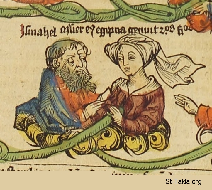 إسماعيل ابن إبراهيم وزوجته - من كتاب تاريخ نورنبيرج، بقلم هارتمان شيدل، 1493 م.