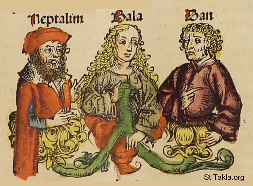 بلهة امرأة يعقوب، وأم نفتالي ودان - من كتاب تاريخ نورنبيرج، بقلم هارتمان شيدل، 1493 م.