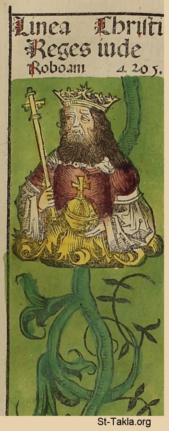 رحبعام ملك يهوذا، ابن سليمان - من كتاب تاريخ نورنبيرج، بقلم هارتمان شيدل، 1493 م.