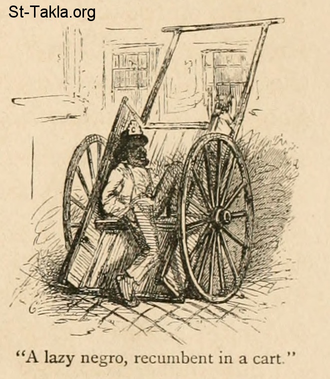 رجل أسود كسول، مستلقٍ في عربة - من صور كتاب الولايات الجنوبية في أمريكا الشمالية، تأليف إدوارد كينج، 1875 م.