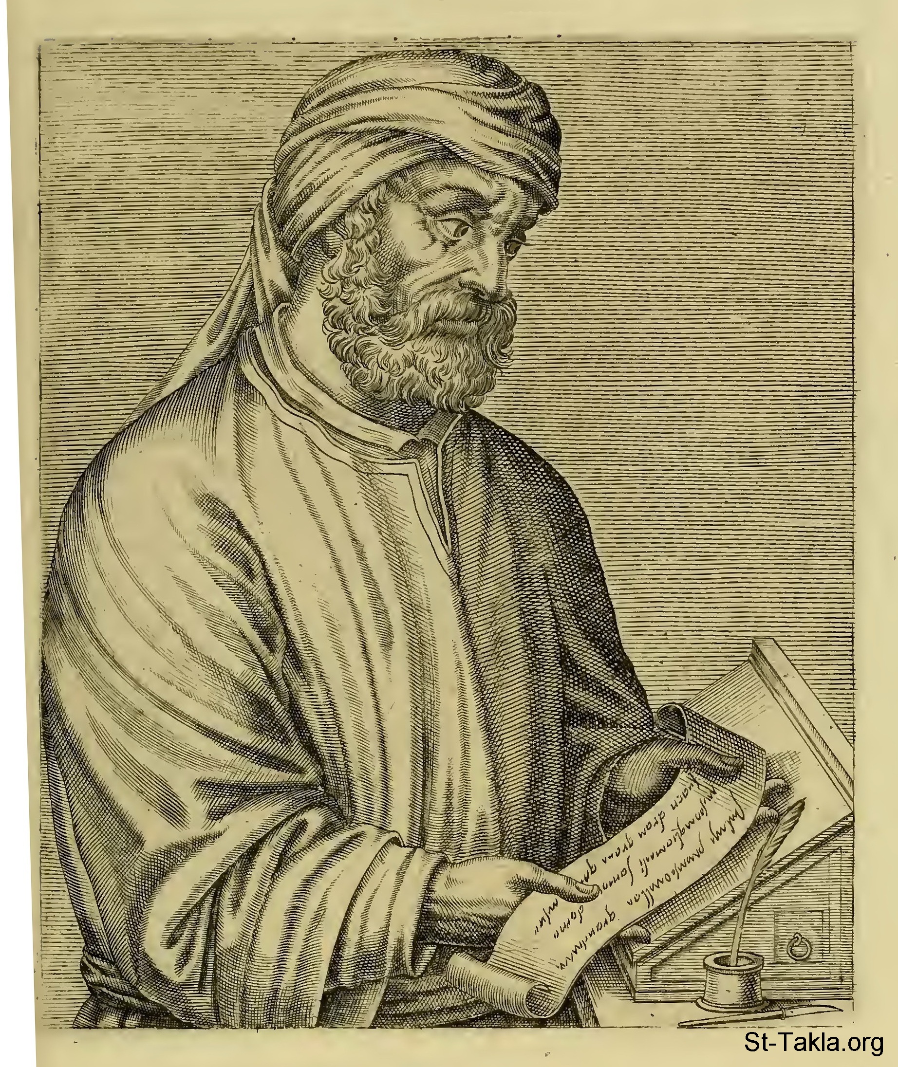 العلامة ترتليان (كوينتوس سيبتيميوس فلورنس ترتوليانوس): (155-240 م.) من قرطاجنة - من صور كتاب ملاحظات حقيقية من سير رجال مشهورين من اليونان واللاتين والوثنيين، لـ:أندريه ثيفيت، 1584 م.
