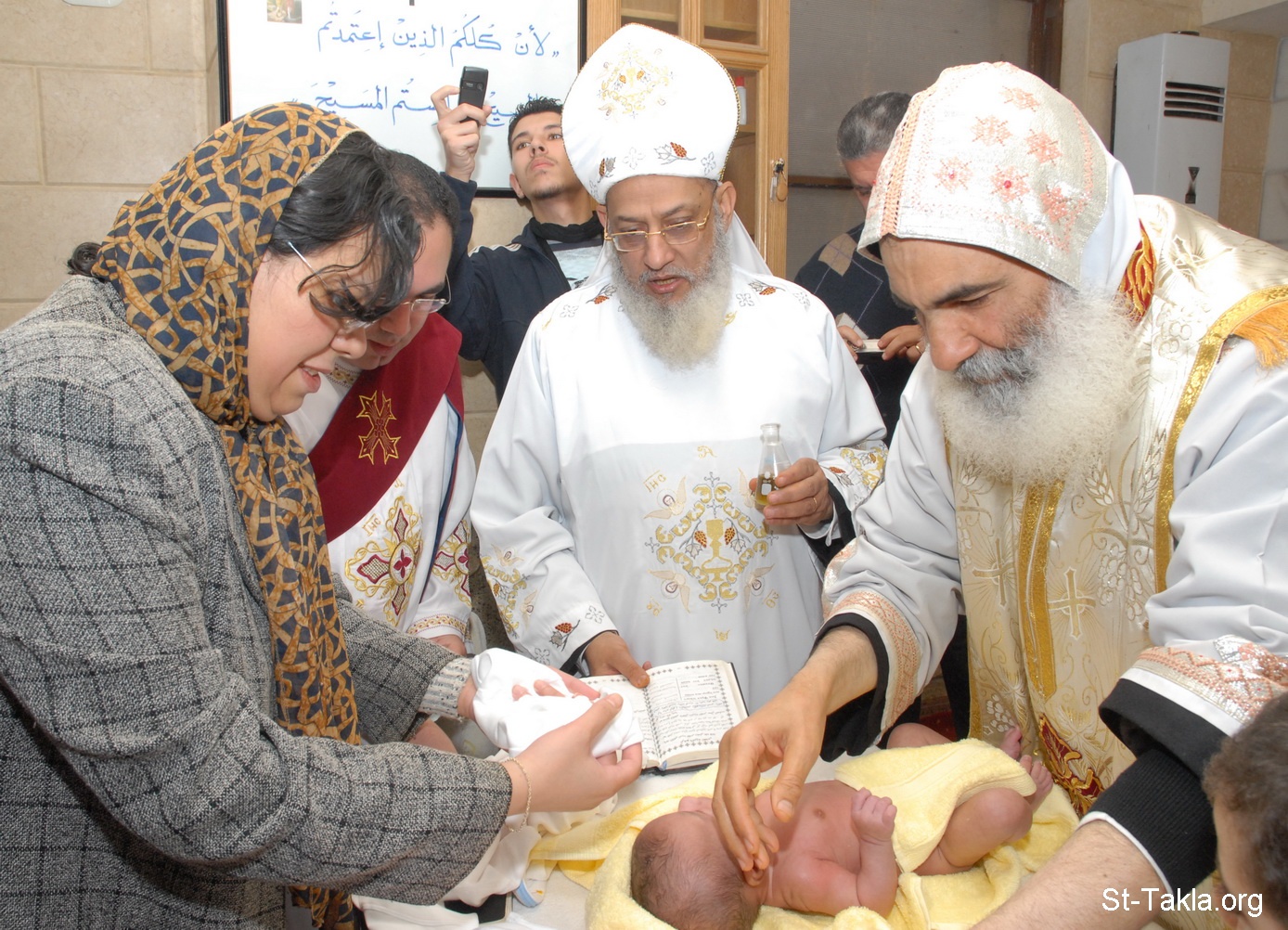 وضع زيت الميرون المقدس: المسحة المقدسة - من صور عماد أحد الأطفال في كنيسة الأنبا تكلاهيمانوت بالإبراهيمية، الإسكندرية، بواسطة الأنبا بنيامين، 27 فبراير 2009 - موضوعة بإذن أسرة الطفل (أ. راجي صبحي).
