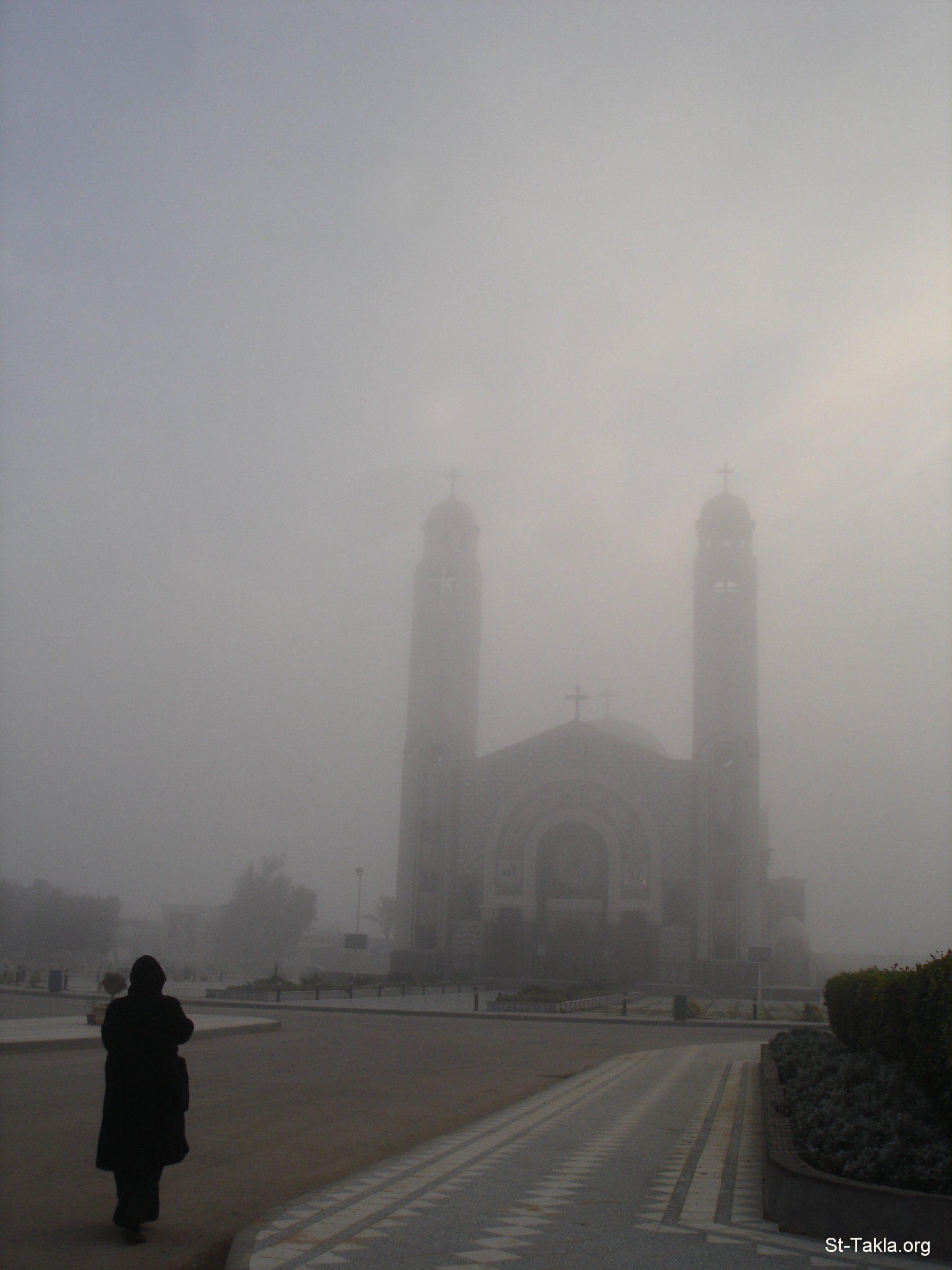راهب ذاهب إلى الكنيسة فجرًا (في الصباح الباكر) - صور قداس الأب الراهب القس ديسقوروس آفا مينا، في دير القديس الشهيد مارمينا بصحراء مريوط، 22 ديسمبر 2010 م. - تصوير مايكل غالي لموقع الأنبا تكلاهيمانوت.
