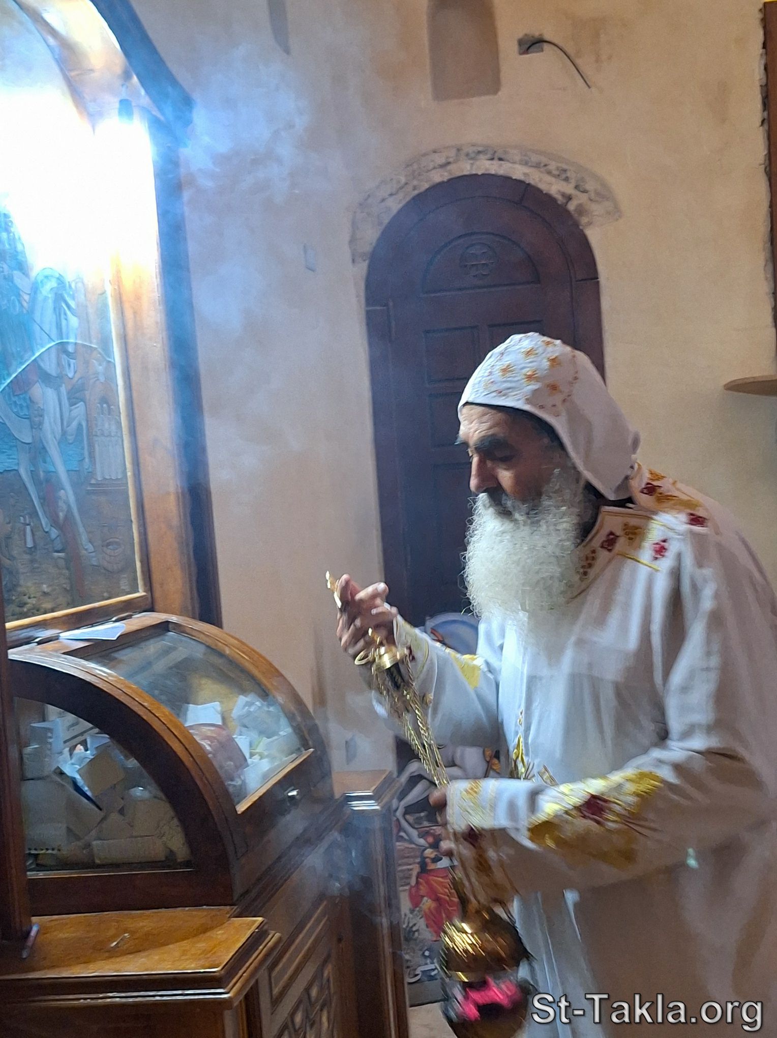 - Ordination of Father Isithoros Al-Anba Bishoy as a monk (image 636), by the hand of Bishop Aghapius, at St. Bishoy Monastery, Wadi El Natrun, Behira, Egypt. - Photograph by Michael Ghaly for St-Takla.org, 16 March 2024.