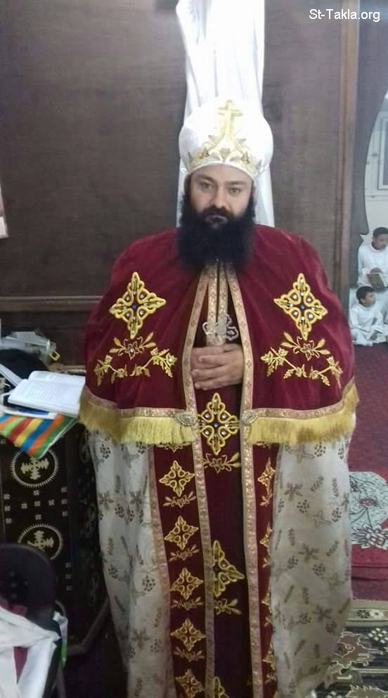 قدس أبونا القس إيلياس فرج عوض الله بالملابس الكهنوتية، كاهن كنيستيّ مارجرجس بالأخماس، والأنبا مقار بأبو نشابة، الخطاطبة، مركز السادات، المنوفية، مصر