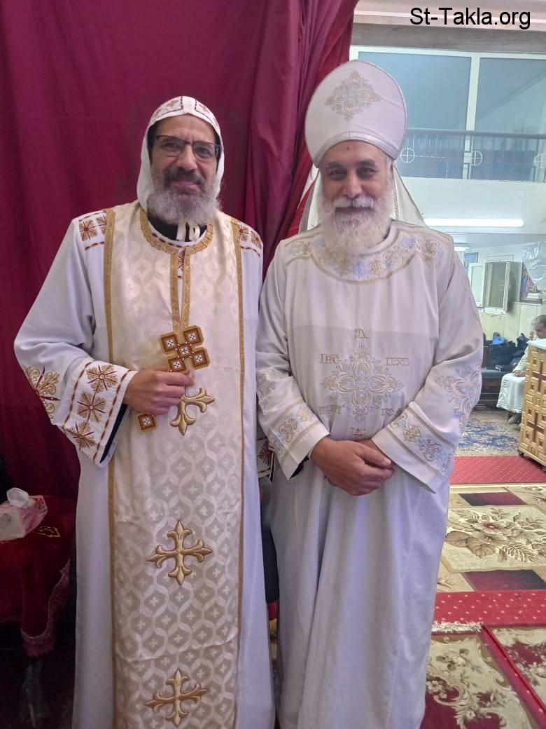 نيافة الأنبا أنجيلوس مع أبونا القمص يوسف القمص تادرس الحومي (صورة 6)، كاهن كنيسة الملاك ميخائيل القبطية الأرثوذكسية، أرض رائف، شبرا مصر، القاهرة، مصر - 21 ديسمبر 2022 م .