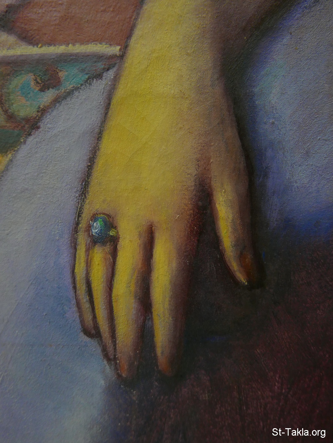 A girl, painting by Hamid Eweis (details 2), 1954, oil on canvas, 100x80 cm. - Fine Arts Museum, Alexandria, Egypt (image 100) - Photograph by Michael Ghaly for St-Takla.org, December 5, 2019.