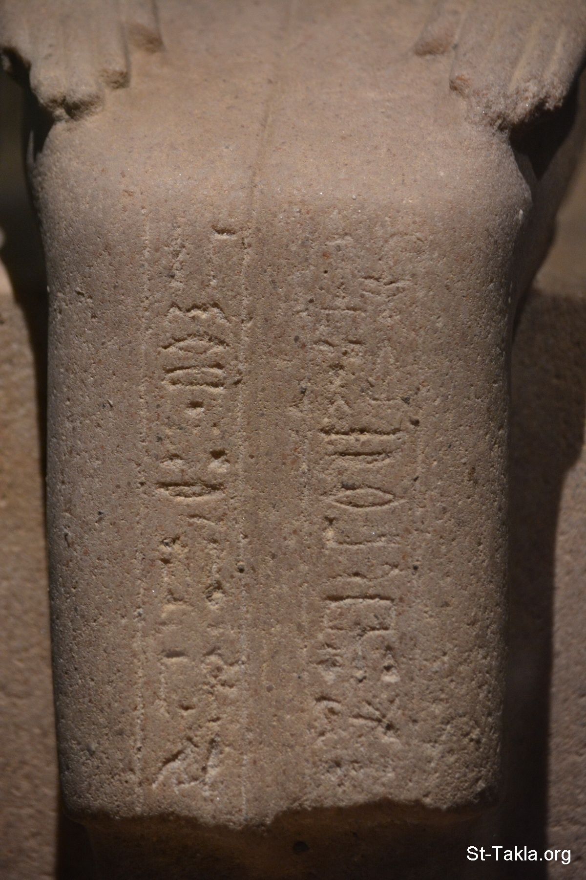 Seated statue of a man, quartzite, Middle Kingdom, Karnak (details 2) - Alexandria National Museum, Egypt (Ancient Egyptian Monuments) - Photograph by Michael Ghaly for St-Takla.org, November 13, 2019.