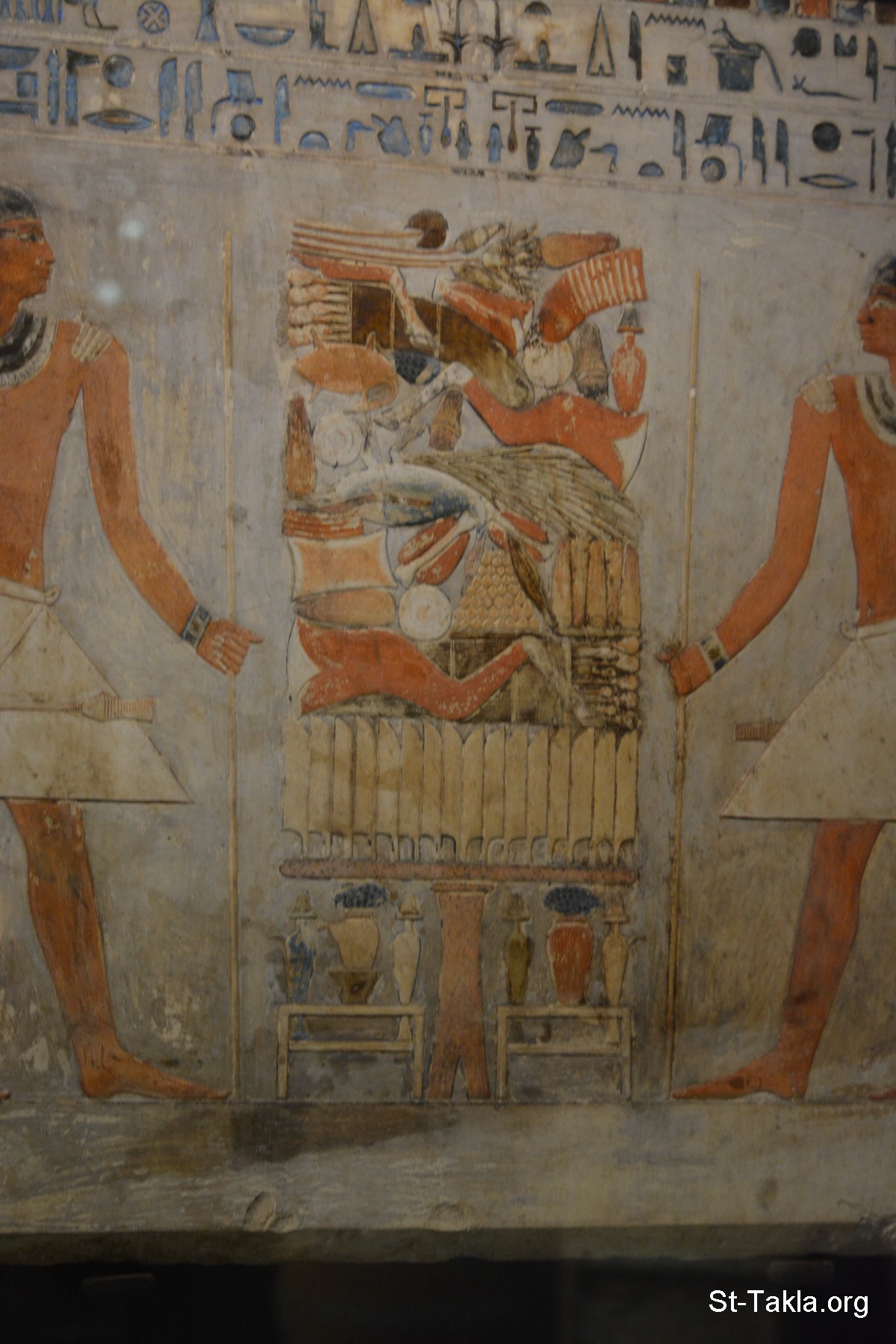 A stele belonging to a woman called "Abahet", with here husband in front of the offering table, along with the offering formula text - painted limestone, Middle Kingdom (details 10) - Alexandria National Museum, Egypt (Ancient Egyptian Monuments) - Photograph by Michael Ghaly for St-Takla.org, November 13, 2019.