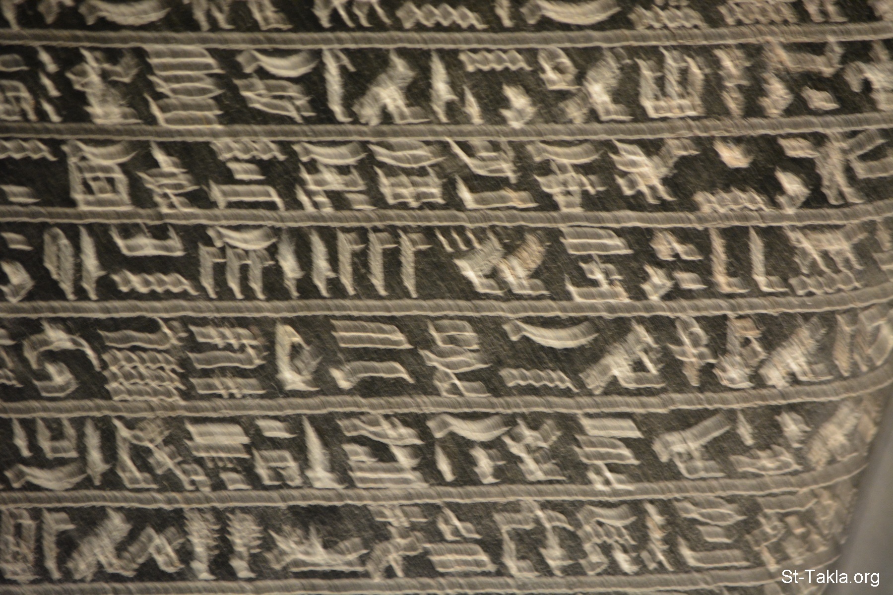 A block statue of a man called "Ahmose", with inscriptions of the dead man's names and titles - basalt, Late Period, Karnak (details 9) - Alexandria National Museum, Egypt (Ancient Egyptian Monuments) - Photograph by Michael Ghaly for St-Takla.org, November 13, 2019.