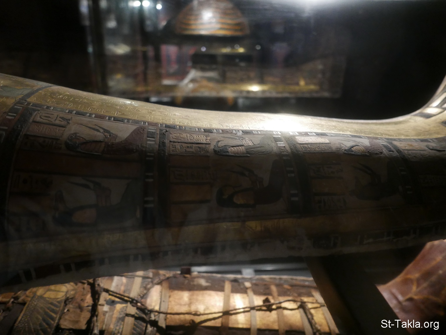 Coffin and a mummy board (one includes a mummy for a person called "Pakhel", plastered and painted wood, Late Period (details 119) - Alexandria National Museum, Egypt (The Tomb: Ancient Egyptian Monuments) - Photograph by Michael Ghaly for St-Takla.org, May 2, 2012/November 13, 2019.