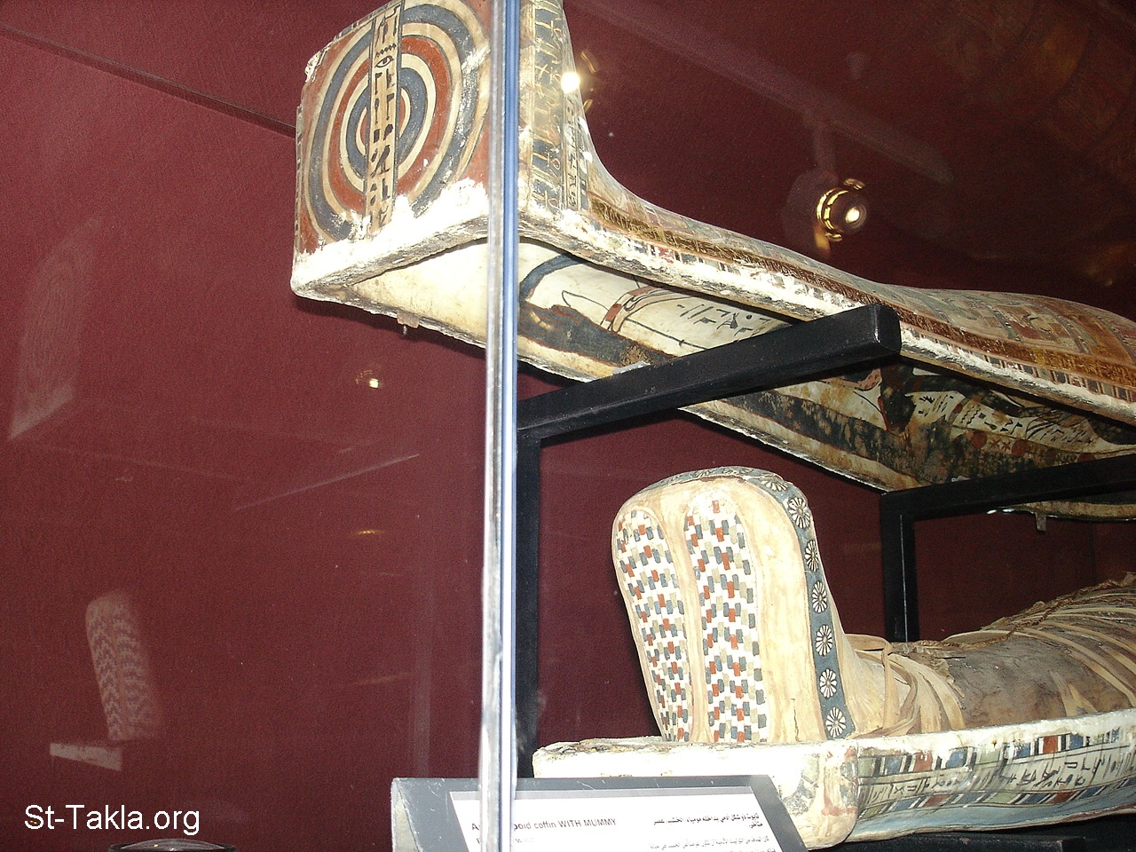 Coffin and a mummy board (one includes a mummy for a person called "Pakhel", plastered and painted wood, Late Period (details 124) - Alexandria National Museum, Egypt (The Tomb: Ancient Egyptian Monuments) - Photograph by Michael Ghaly for St-Takla.org, May 2, 2012/November 13, 2019.