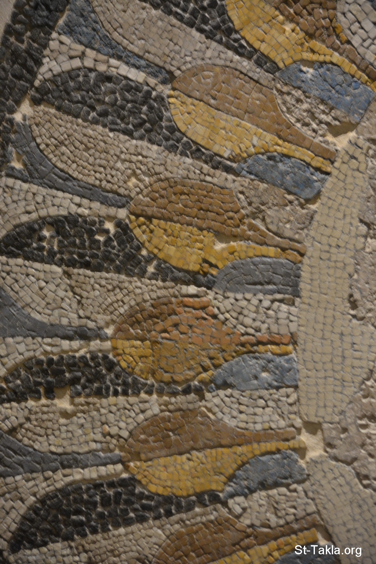 A mosaic portraying Queen Berenice II of Egypt, the wife of Ptolemy III Euergetes (details 2) - Alexandria National Museum, Egypt (Greco-Roman Monuments) - Photograph by Michael Ghaly for St-Takla.org, November 13, 2019.