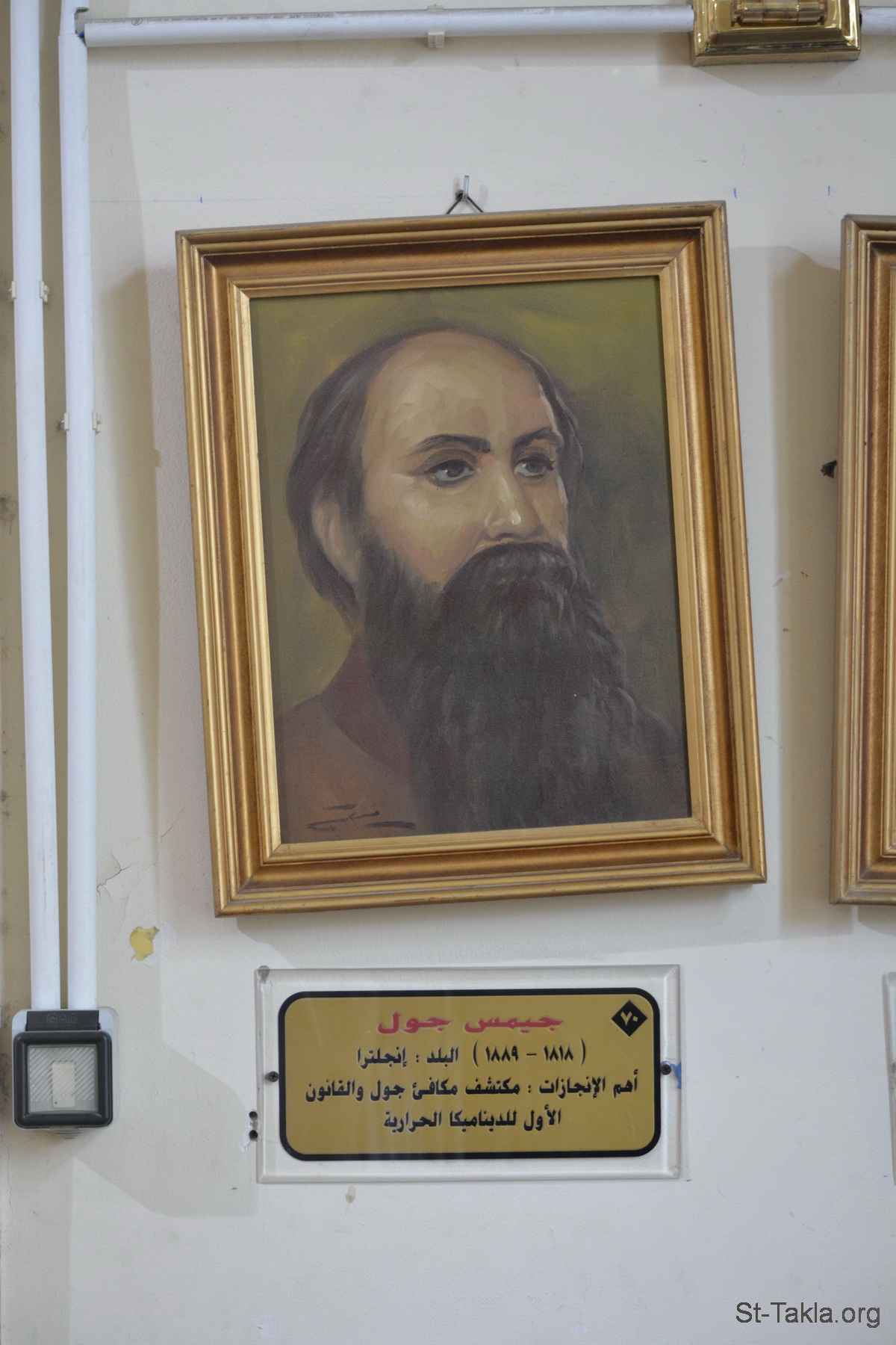 جيمس دزل (1818-1889)، إنجلترا، مكتشف مكافئ جول والقانون الأول للديناميكا الحرارية - من صور قاعة العلماء، بالمركز الاستكشافي التعليمي، فرع القصر، الإسكندرية، مصر - تصوير مايكل غالي لموقع الأنبا تكلاهيمانوت، 1 ديسمبر 2019 م.