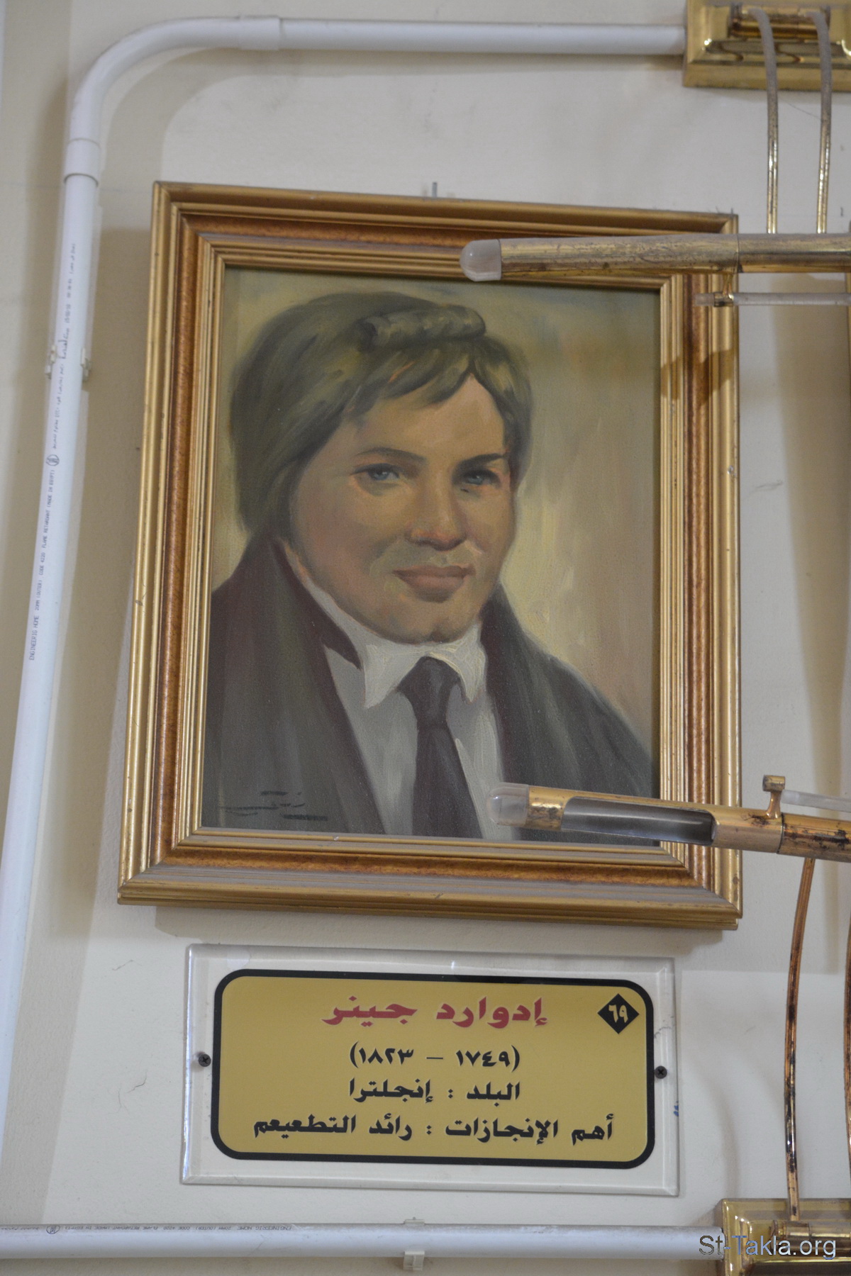 إدوارد جينر (1749-1823)، إنجلترا، رائد التطعيم - من صور قاعة العلماء، بالمركز الاستكشافي التعليمي، فرع القصر، الإسكندرية، مصر - تصوير مايكل غالي لموقع الأنبا تكلاهيمانوت، 1 ديسمبر 2019 م.