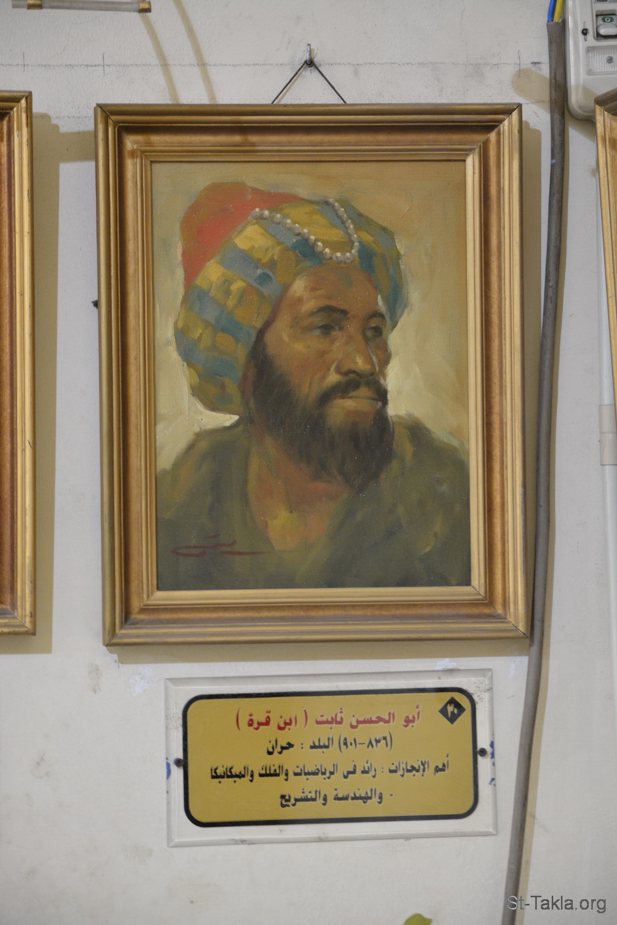 أبو الحسن ثابت: ابن قرة (836-901)، حران، تركيا، رائد في الرياضيات والفلك والميكانيكا والهندسة والتشريح - من صور قاعة العلماء، بالمركز الاستكشافي التعليمي، فرع القصر، الإسكندرية، مصر - تصوير مايكل غالي لموقع الأنبا تكلاهيمانوت، 1 ديسمبر 2019 م.