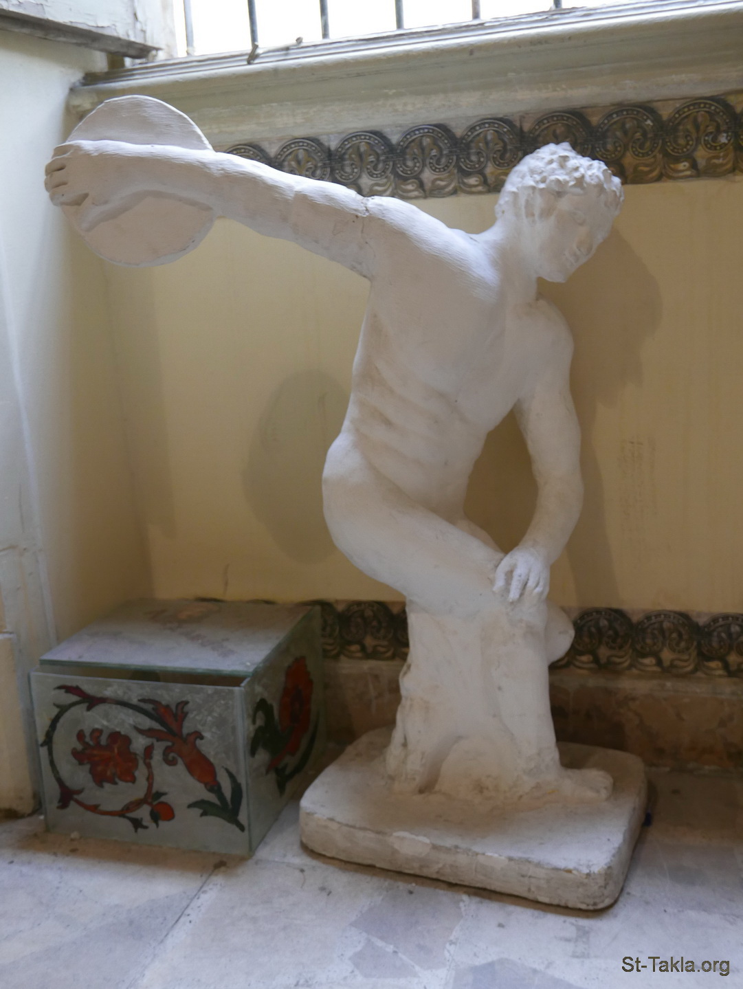 نسخة من تمثال رامي القرص (ديسكوبولوس) (صورة 1) - من صور المركز الاستكشافي التعليمي، فرع القصر، الإسكندرية، مصر - تصوير مايكل غالي لموقع الأنبا تكلاهيمانوت، 1 ديسمبر 2019 م.