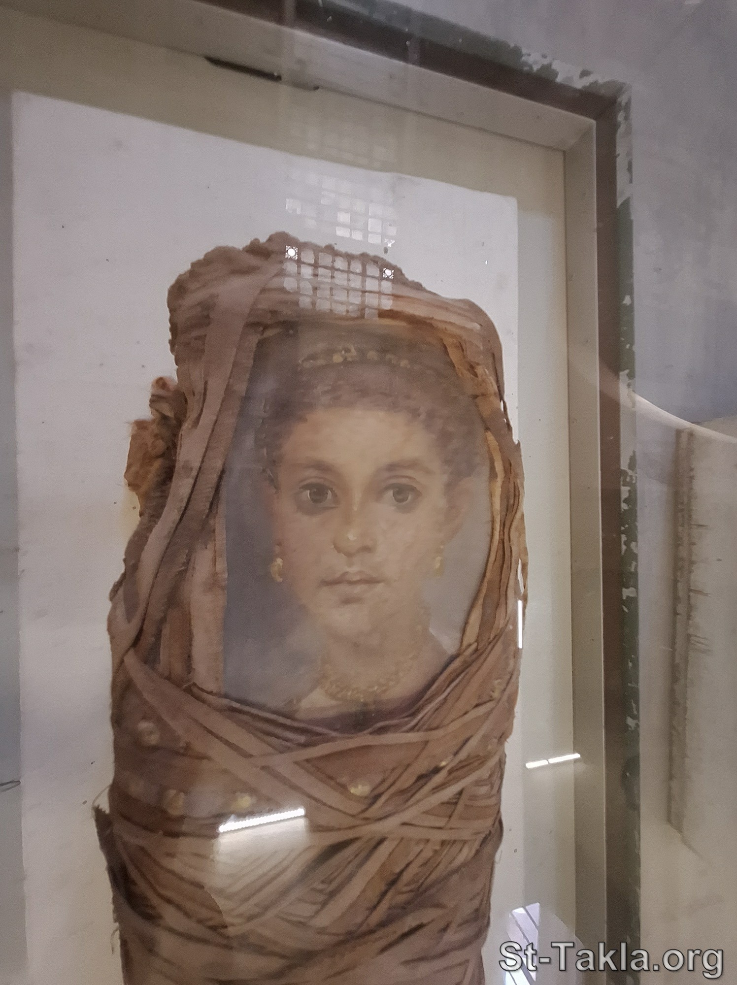 Fayum Mummy Child Portrait (details). - Egyptian Museum: Upper Floor (image 3440): Cairo, Egypt - Photograph by Michael Ghaly for St-Takla.org, 18, 21 November 2023.