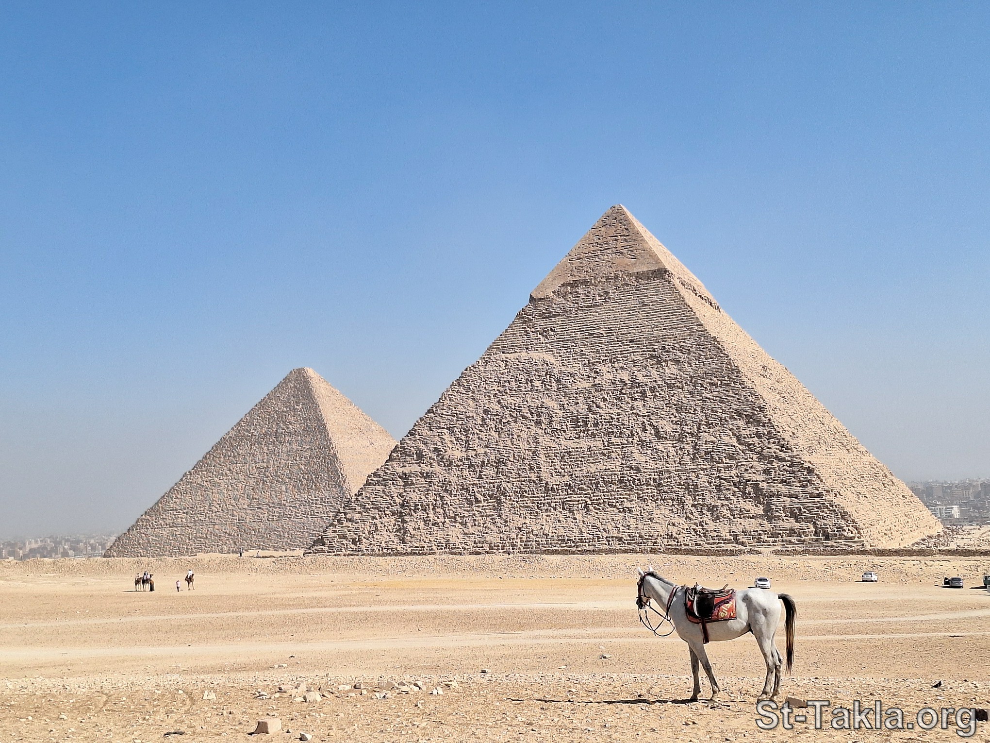 أهرمات الجيزة، وحصان أبيض: الأهرام (صورة 1290): أهرامات الجيزة، مصر - تصوير مايكل غالي لـ: موقع الأنبا تكلا هيمانوت، 23 نوفمبر 2023 م.