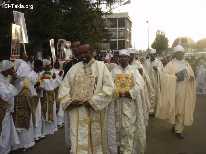 الكتب المقدسة - احتفالية كنيسة الثالوث (سيلاسي) في أديس أبابا بحضور قداسة البابا شنوده الثالث، إبريل 2008 - تصوير مايكل غالي لموقع الأنبا تكلاهيمانوت، من رحلة موقع الأنبا تكلا إلى إثيوبيا، إبريل - يونيو 2008 م.
