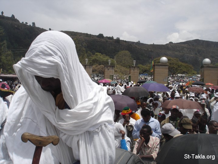 Lifting their hearts to the lord on the day of the feast of our beloved Saint - Monastery of Debre Libanos, from St-Takla.org's Ethiopia visit, Photograph by Michael Ghaly for St-Takla.org, April-June 2008.
