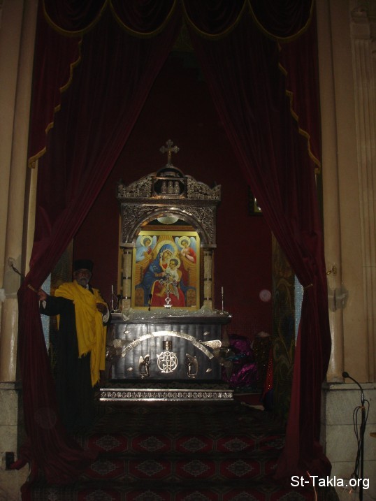 A priest showing us the Holy Altar - Slasee Trinity Church, Arat Kilo, Addis Ababa - from St-Takla.org's Ethiopia visit - Photograph by Michael Ghaly for St-Takla.org, April-June 2008.