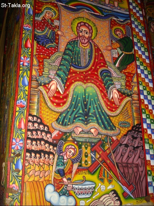 السيد المسيح في يوم الدينونة: "يقيم الخراف عن يمينه والجداء عن اليسار" (متى 25: 33) - من ألبوم صور أديرة بحيرة تانا، بحردار، الحبشة - تصوير مايكل غالي لموقع الأنبا تكلاهيمانوت، من رحلة موقع الأنبا تكلا إلى إثيوبيا، إبريل - يونيو 2008 م.