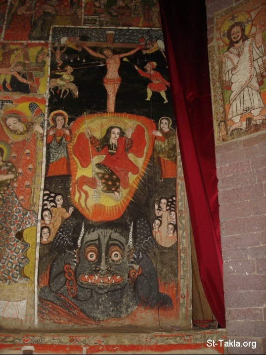 يسوع المسيح يذهب إلى الجحيم ليخلص أبرار العهد القديم من الشيطان - من ألبوم صور أديرة بحيرة تانا، بحردار، الحبشة - تصوير مايكل غالي لموقع الأنبا تكلاهيمانوت، من رحلة موقع الأنبا تكلا إلى إثيوبيا، إبريل - يونيو 2008 م.