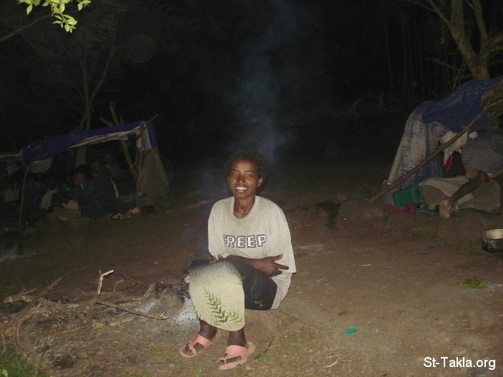 التمتع بحرارة النار - من ألبوم صور منطقة دير جند تكلاهيمانوت، جوندر، الحبشة - تصوير مايكل غالي لموقع الأنبا تكلاهيمانوت، من رحلة موقع الأنبا تكلا إلى إثيوبيا، إبريل - يونيو 2008 م.