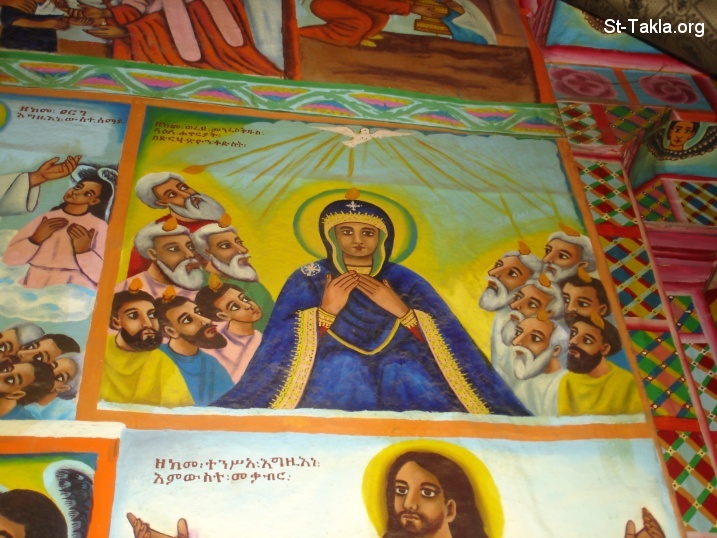 عيد حلول الروح القدس (البنتيكوست) مع مريم القديسة و الـ 12 تلميذ، صورة حبشية نادرة - من ألبوم صور كنيسة الأنبا تكلاهيمانوت بمنطقة البيازا، جوندر، الحبشة - تصوير مايكل غالي لموقع الأنبا تكلاهيمانوت، من رحلة موقع الأنبا تكلا إلى إثيوبيا، إبريل - يونيو 2008 م.