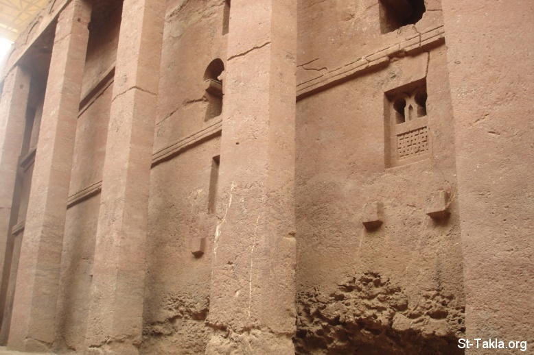هذه الأعمدة منحوتة وليست مبنية مثل سابقة الذكر - من ألبوم صور كنائس مدينة لاليبيلا المنحوتة في الصخور، الحبشة - تصوير مايكل غالي لموقع الأنبا تكلاهيمانوت، من رحلة موقع الأنبا تكلا إلى إثيوبيا، إبريل - يونيو 2008 م.