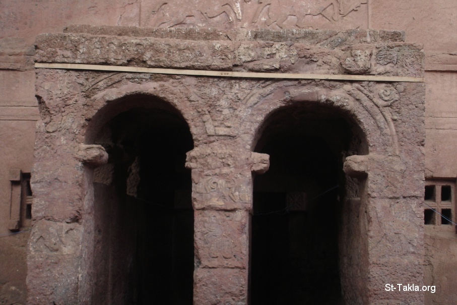 Various decorations on the entrance - Laibella Rock Hewn Churches - From St-Takla.org's Ethiopia visit - Photograph by Michael Ghaly for St-Takla.org, April-June 2008.