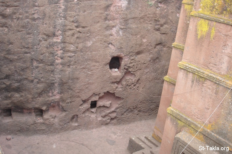 Lots of holes, and each has a purpose.. - Laibella Rock Hewn Churches - From St-Takla.org's Ethiopia visit - Photograph by Michael Ghaly for St-Takla.org, April-June 2008.