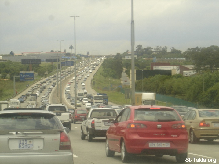 طريق هاي واي، عربات في الشارع، الطريق السريع، في مدينة جوهانزبرج، جنوب أفريقيا - تصوير مايكل غالي لـ: موقع الأنبا تكلا هيمانوت، 2007 م.