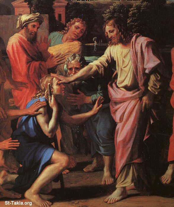 شفاء أعمى أريحا (تفاصيل)، للفنان نيكولا بوسان، 1650 م.، زيت على قماش (119×176 سم.)، متحف اللوفر، باريس.