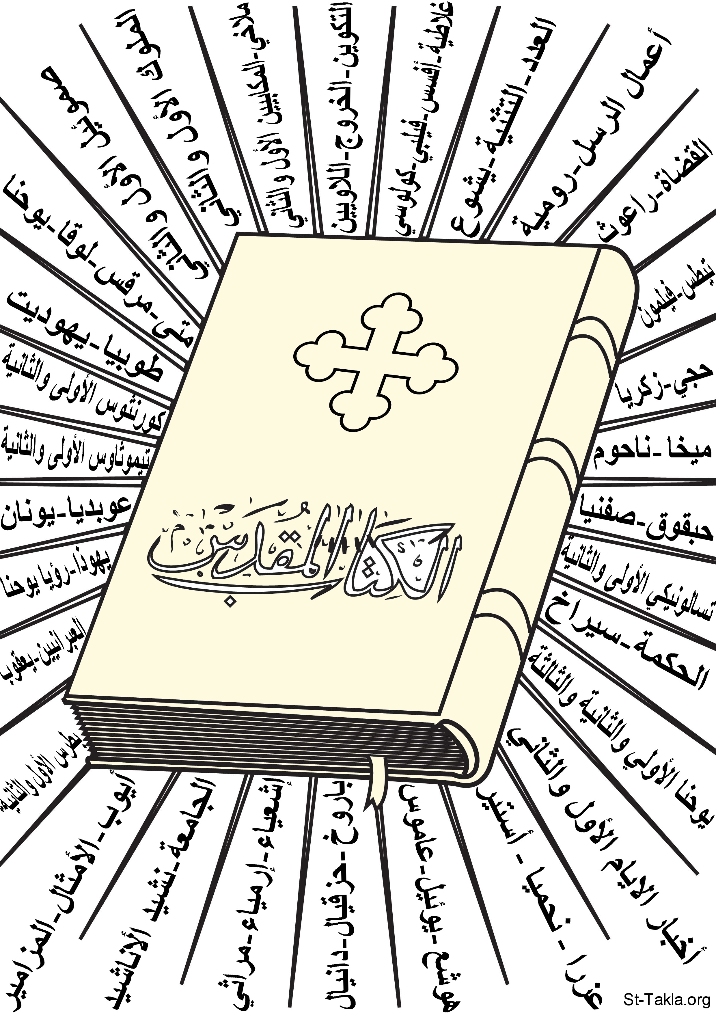 تلوين صورة الإنجيل - موضوعة بإذن: موسوعة الزخارف القبطية للتلوين - تم إضافة أسماء أسفار الكتاب المقدس الـ73 بواسطة موقع الأنبا تكلاهيمانوت.