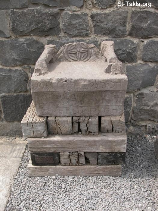 كرسي موسى، حيث يجلس المعلمون في المجمع اليهودي: "على كرسي موسى جلس الكتبة والفريسيون" (مت 23: 2) - من معبد كورزين اليهودي، كاتدرائية دامشا، شمال إسرائيل، تصوير إيفي باراك، 27 مايو 2007 م.
