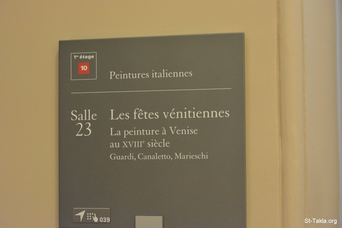1st floor, Italian paintings in the Louvre - Room 23 (Salle 23): Venetian festivals, Painting in Venice in the 18th century Guardi, Canaletto, Marieschi - The Louvre Museum (Musée du Louvre), Paris, France - Photograph by Michael Ghaly for St-Takla.org, October 11-12, 2014.