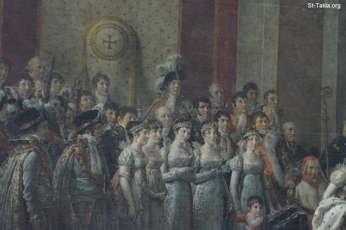 تكريس الإمبراطور نابليون بونابرت، وتتويج الإمبراطورة جوزفين يوم 2 ديسمبر 1804 م. (صورة 3) - اللوحة رسم الفنان جاك لوي دافيد، 1805/7، زيت على قماش بمقاس 6,21×9,79 م. - صور متحف اللوفر (اللوڤر)، باريس، فرنسا - تصوير مايكل غالي لموقع الأنبا تكلاهيمانوت، 11-12 أكتوبر 2014 م.
