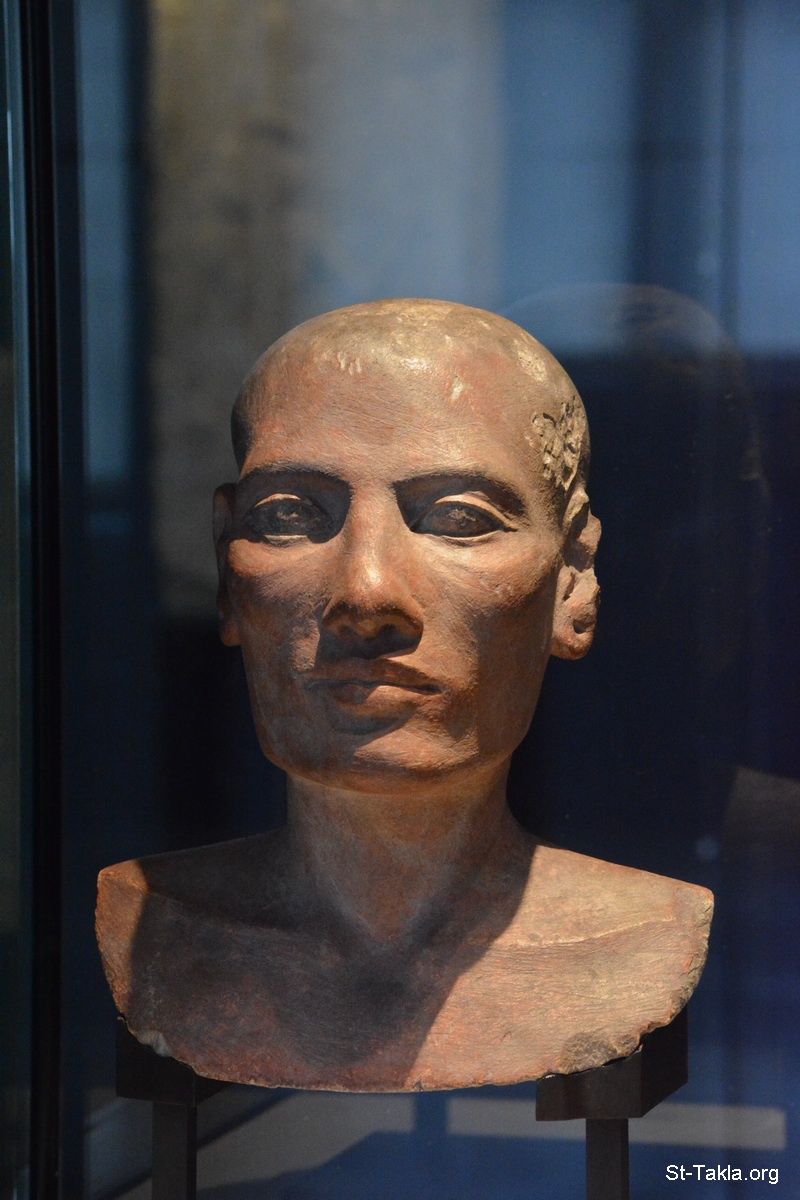 Man head. Limestone. Polychromy - The Louvre Museum (Musée du Louvre), Paris, France - Photograph by Michael Ghaly for St-Takla.org, October 11-12, 2014.