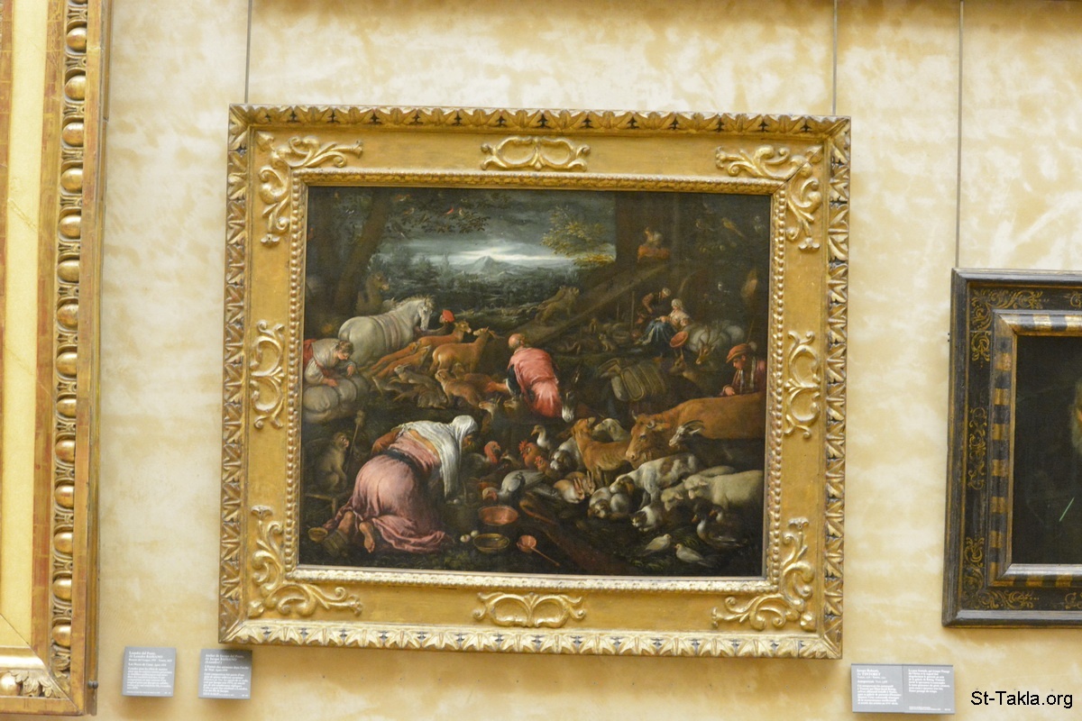 دخول الحيوانات إلى فلك نوح، لوحة رسم الفنان جاكوبو باسانو، بعد عام 1579 م.، زيت على لوح بمقاس 100,9×120,6 سم، قسم اللوحات، الدور الأول، حجرة 6، مجموعة لويس الرابع عشر، 1671، مُشتراة من جان باتيس دي لا فويل - صور متحف اللوفر (اللوڤر)، باريس، فرنسا - تصوير مايكل غالي لموقع الأنبا تكلاهيمانوت، 11-12 أكتوبر 2014 م.
