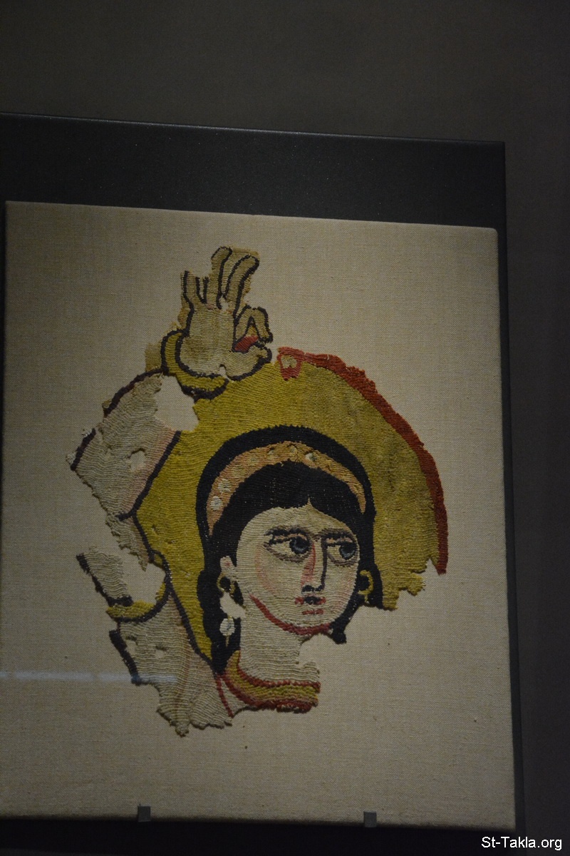Head of a dancer, Coptic wool textile, 4th–5th century, Egypt - The Louvre Museum (Musée du Louvre), Paris, France - Photograph by Michael Ghaly for St-Takla.org, October 11-12, 2014.