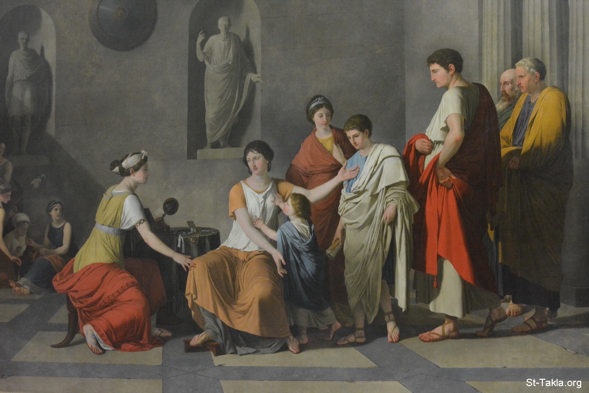 لوحة كورنيليا أم الجراتشين، رسم الفنان جوزيف بينوا سوفيه، 1795، زيت على قماش بمقاس 320×414 سم، قسم اللوحات، حجرة 934 (صورة 1) - صور متحف اللوفر (اللوڤر)، باريس، فرنسا - تصوير مايكل غالي لموقع الأنبا تكلاهيمانوت، 11-12 أكتوبر 2014 م.