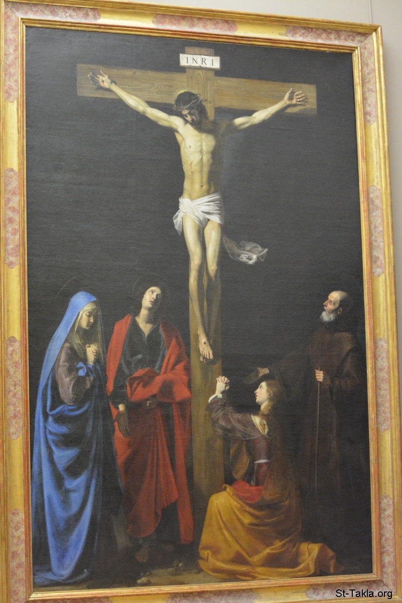 لوحة الصلب: السيد المسيح على الصليب وبجانبه: القديسة مريم العذراء، القديسة مريم المجدلية، القديس يوحنا الحبيب، القديس فرنسيس الباولي (فرنسيس من باولا) (صورة 2) - رسم الفنان نيكولاس تورنيه، 1635 م. تقريبًا، زيت على قماش بمقاس 442×292 سم. - صور متحف اللوفر (اللوڤر)، باريس، فرنسا - تصوير مايكل غالي لموقع الأنبا تكلاهيمانوت، 11-12 أكتوبر 2014 م.