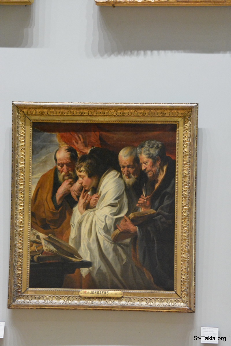 الإنجيليين الأربعة: متى، مرقس، لوقا، يوحنا، لوحة زيت على قماش بمقاس 133×118 سم، رسم الفنان جاكوب جورداينز، 1625 - صور متحف اللوفر (اللوڤر)، باريس، فرنسا - تصوير مايكل غالي لموقع الأنبا تكلاهيمانوت، 11-12 أكتوبر 2014 م.