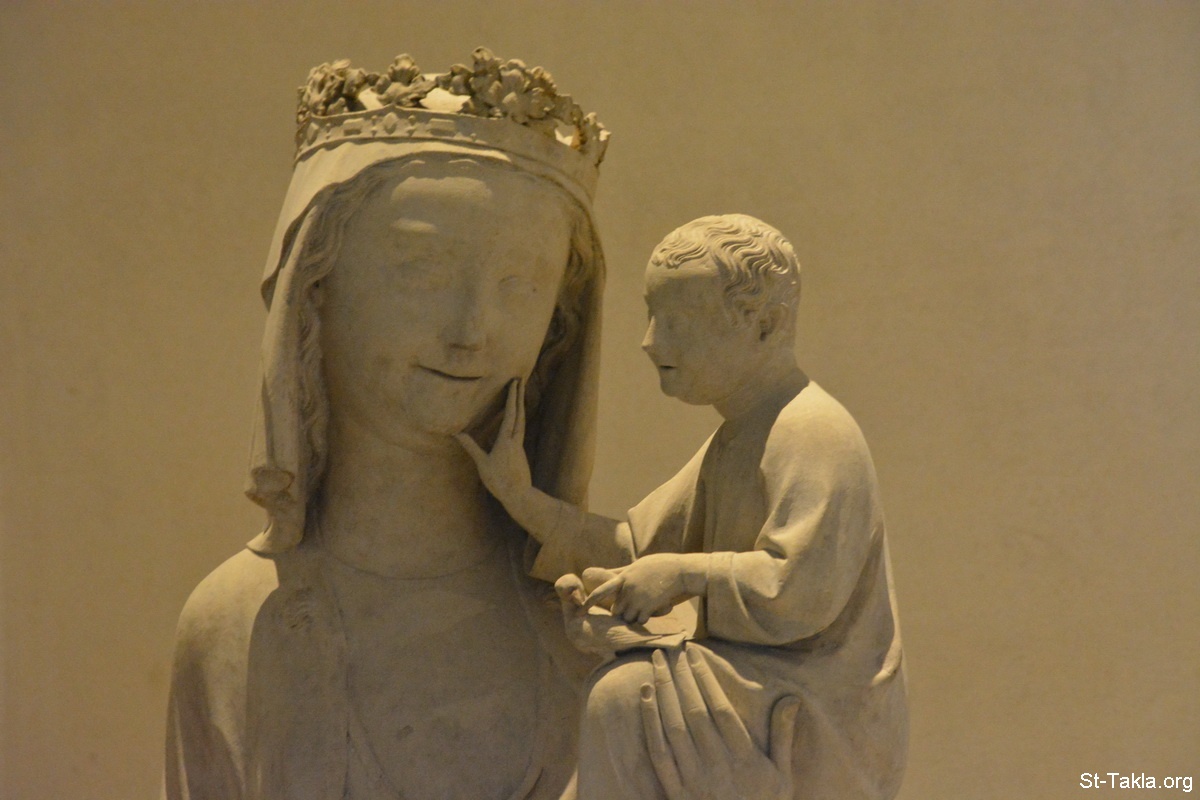 العذراء والطفل (القديسة مريم والطفل يسوع) (صورة 3)، تمثال حجري، من نورماندي، فرنسا، أوائل القرن الرابع عشر. - صور متحف اللوفر (اللوڤر)، باريس، فرنسا - تصوير مايكل غالي لموقع الأنبا تكلاهيمانوت، 11-12 أكتوبر 2014 م.