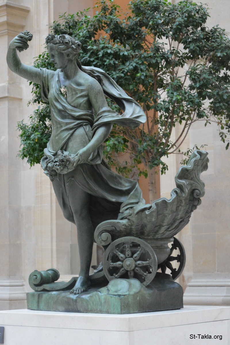 L'Aurore (image 1) (Roman goddess of dawn: Aurora - Eos in Greek mythology), bronze statue by Philippe Magnier, 1693 (or 1686-1690). - The Louvre Museum (Musée du Louvre), Paris, France - Photograph by Michael Ghaly for St-Takla.org, October 11-12, 2014.