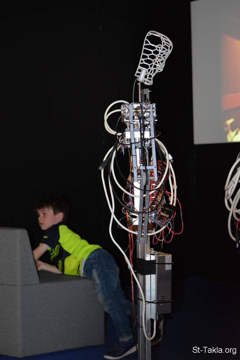طفل صغير يلعب ويتعلم في المعرض - معرض أفكار لعشرون عامًا - من صور كلية الثالوث (ترينيتي كوليدج)، دبلن، أيرلندا - تصوير مايكل غالي لموقع الأنبا تكلاهيمانوت، 21 إبريل 2017 م.